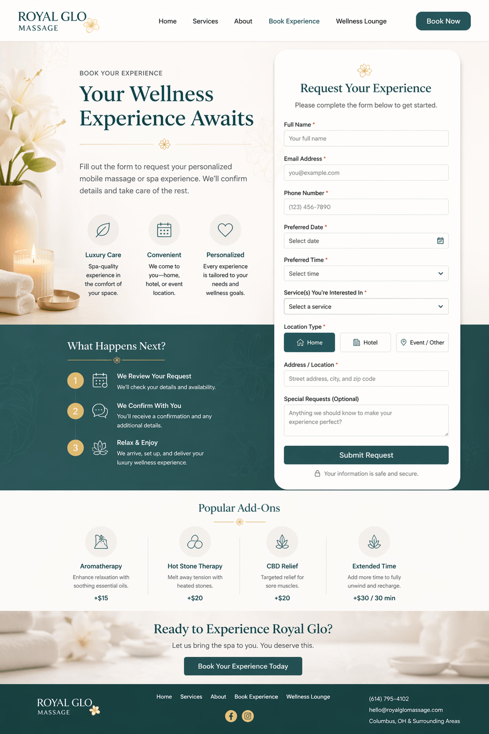 Whether you are looking for a relaxing massage, a couples spa experience, or a wellness event for your apartment community, Royal Glo makes it easy to enjoy a spa-inspired experience without leaving your space.